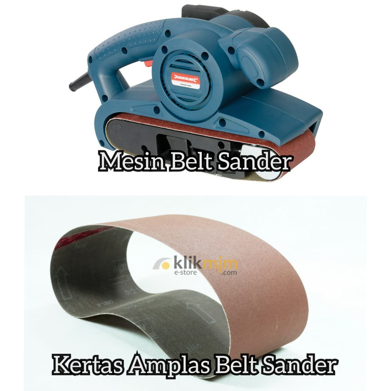 Mesin Amplas/Belt Sander ini menggunakan Kertas amplas khusus, yaitu Amplas Belt